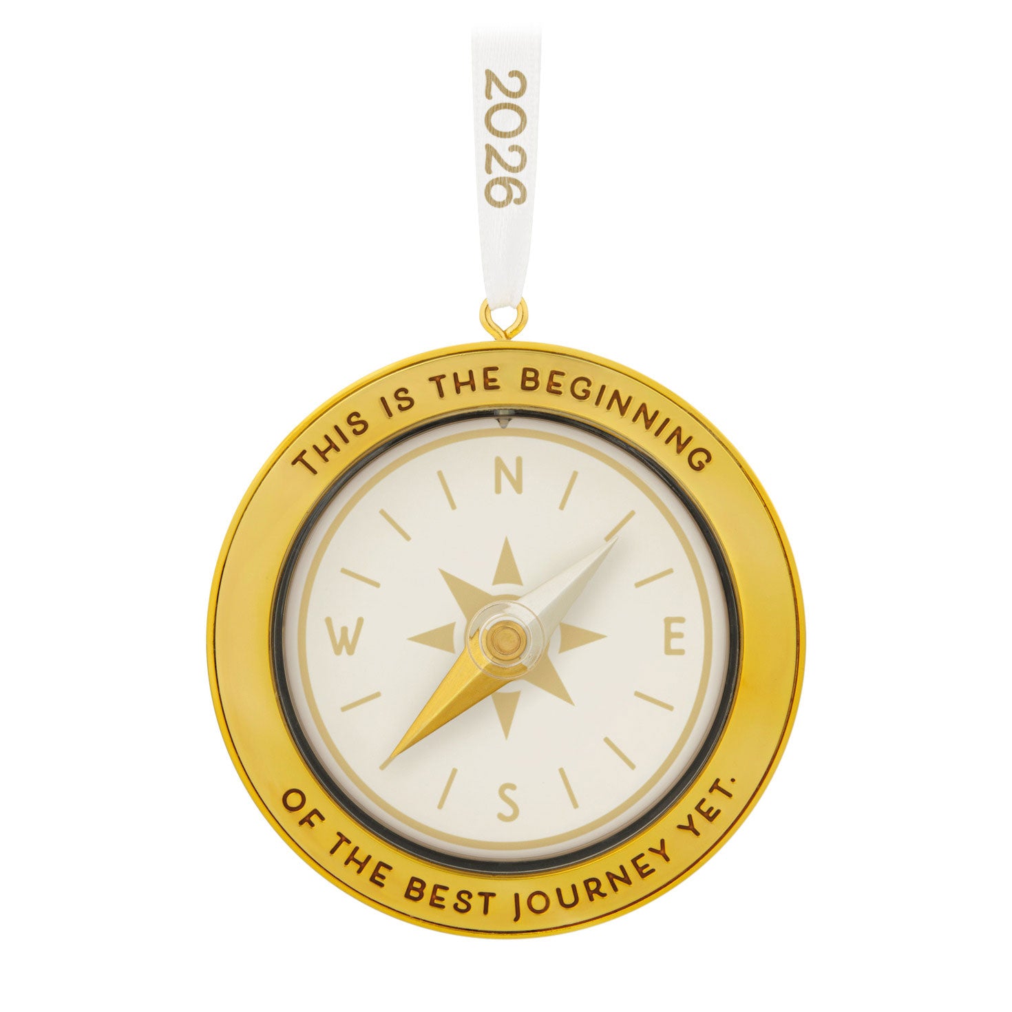 Go places. See things. Show your passion for travel and adventure with this fun Christmas tree ornament. The metal decoration features a classic compass design with an inspiring message. Perfect for commemorating a trip, as a gift for a friend or family member who loves to travel, or as a graduation gift.
