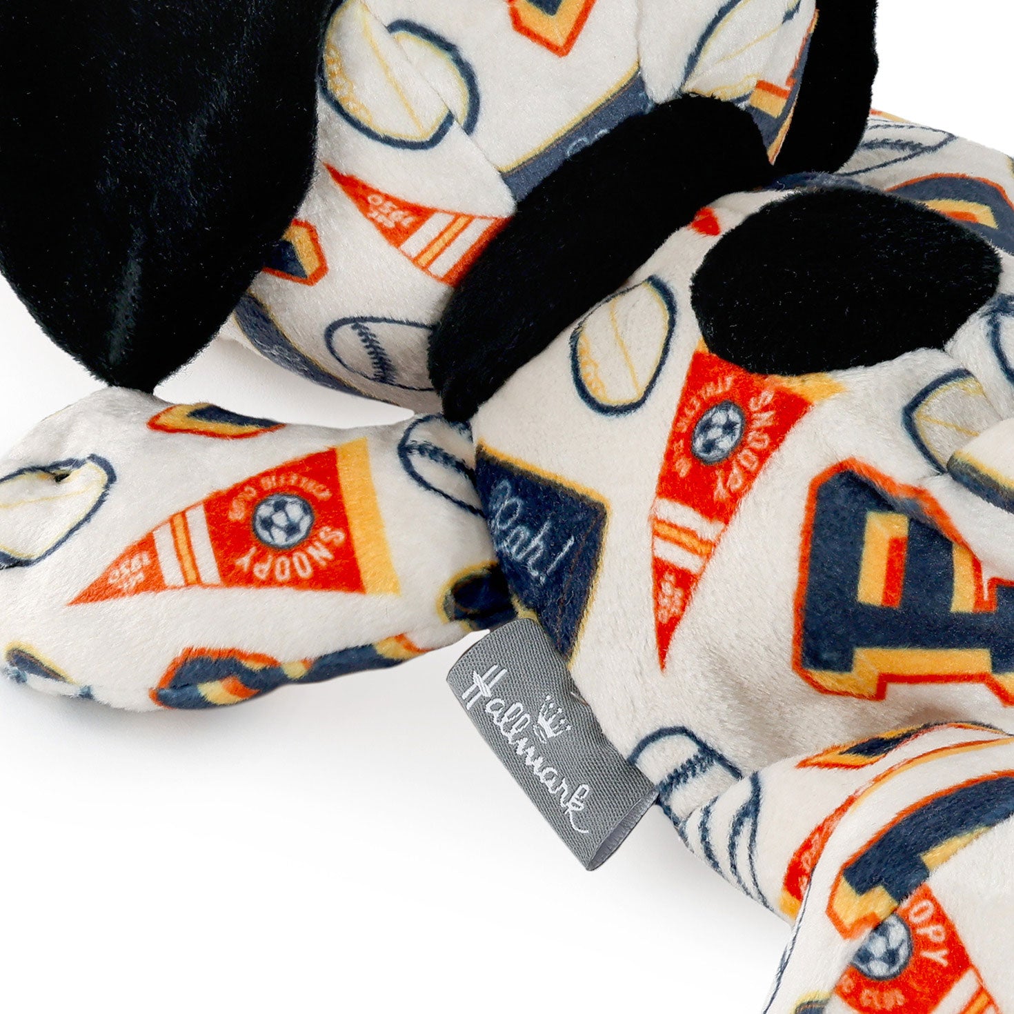 Cozy up with a classic twist on a fan favorite — this floppy Snoopy plush brings a sporty vibe to any room without the mess of muddy cleats. With a soft, huggable body in a relaxed, stretched-out pose, Snoopy is decked out in a nostalgic sports print featuring baseballs, cheerleader megaphones, varsity letters, and spirited pennants. His vintage-inspired design adds old-school spirit that Peanuts fans and sports lovers will adore. Whether you're giving him to a collector or adding a sporty touch to your space, this laid-back Snoopy is all about comfort, character and timeless team spirit.