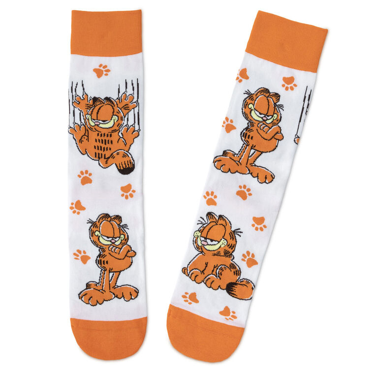 Seize the day, unless it's a Monday, with these Garfield the cat novelty crew socks. The smirking, lasagna-loving cat stands, sits and scratches in fun poses amid orange paw prints and coordinating heel, toe and cuff accents. Swipe this pair of socks for a fellow cat lover or keep them for your cynical self — we won't judge. These fun orange and white socks are a cozy and comical way to show off your love for everyone’s favorite grumpy tabby.